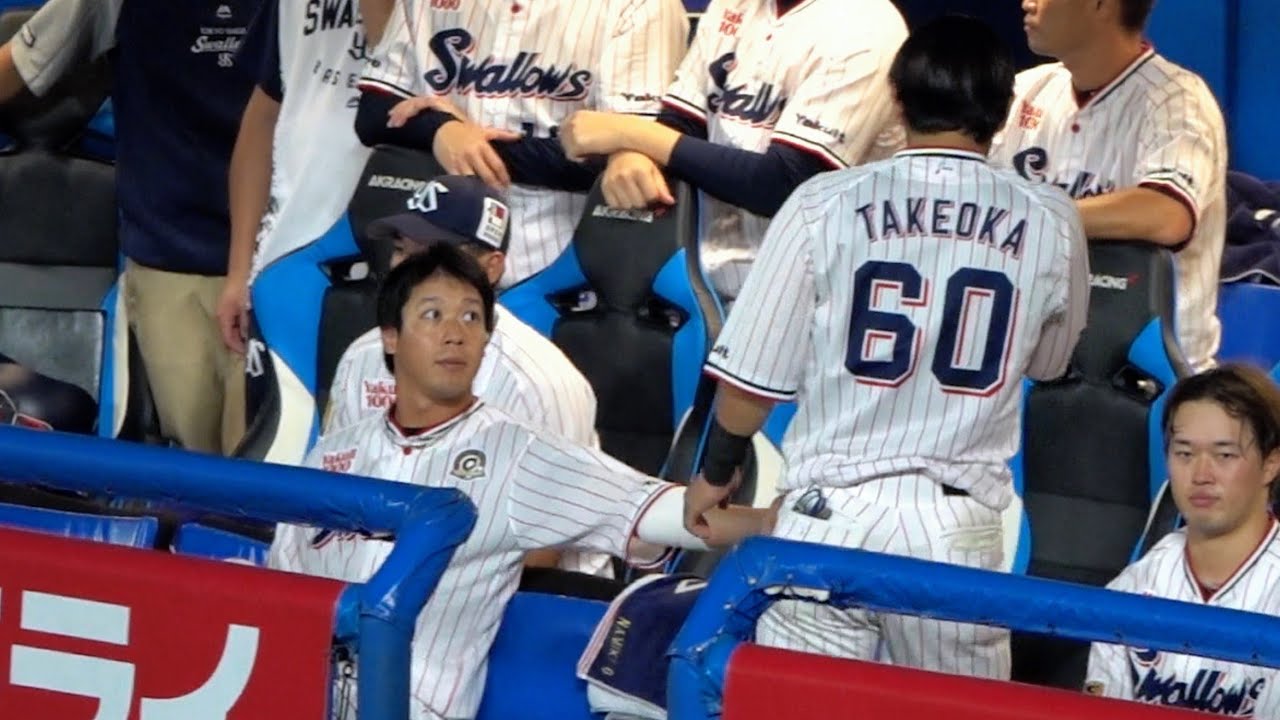 武岡龍世のプロ初ホームランを祝福する山田哲人キャプテン他チームメンバー!2023/08/15 東京ヤクルトスワローズ