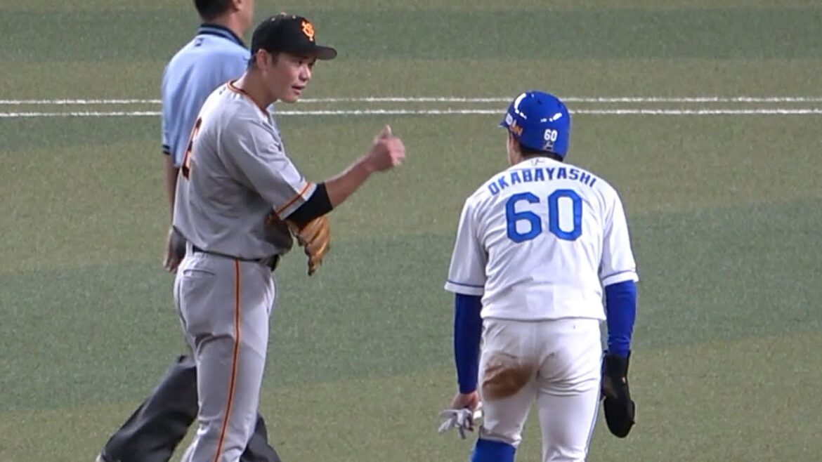 少し守備妨害にも見えた岡林の走塁、岡林にアウトを宣告する坂本勇人(笑) (2023/08/16)