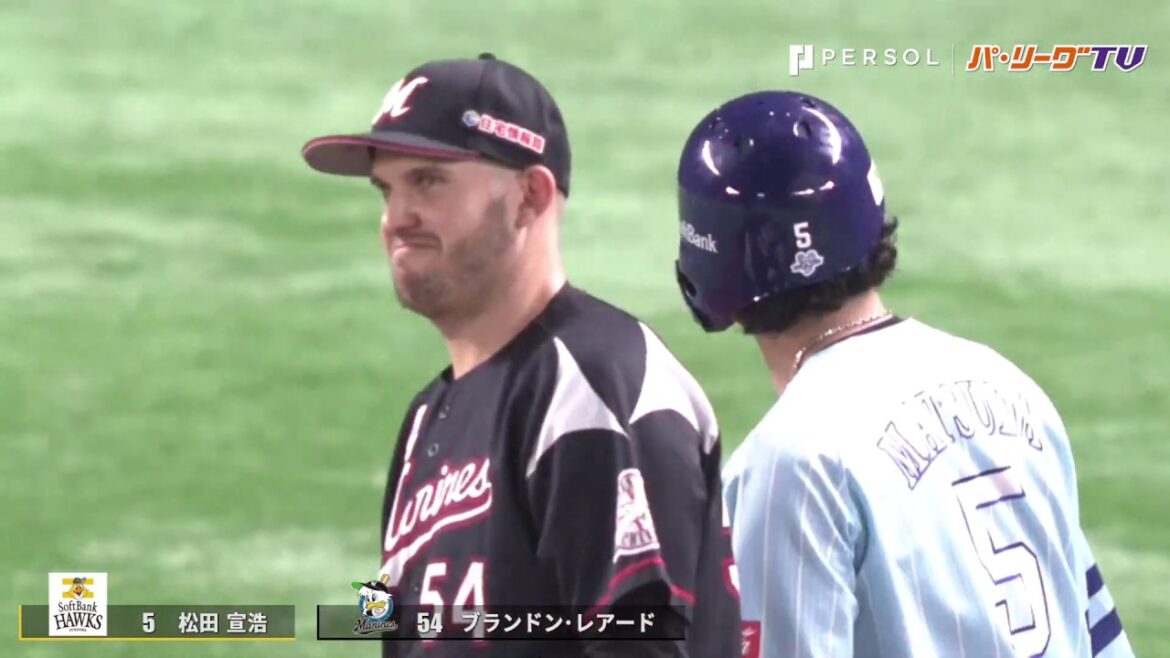 2019年7月25日 福岡ソフトバンクと千葉ロッテによるリーグ公式戦 福岡ソフトバンク・松田宣浩が3塁を陥れ、三塁手の千葉ロッテ・レアードがボールの入っていないグラブでタッチ。すると、松田が驚いた表情を見せるが、すぐにボールがないと知り、舌ペロ。 Chiba Lotte Marinesレアード 野球千葉ロッテマリーンズ NPBHUB.COM | The Fanbase of Nippon Baseball & Nippon Professional Baseball
