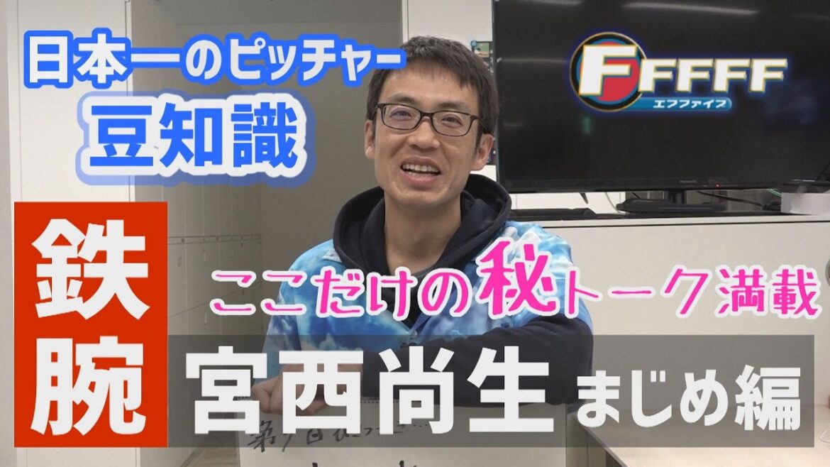 北海道日本ハムファイターズ応援番組「FFFFF(エフファイブ)」番組本編とは一味違った選手のとっておきウラ話をYouTubeをご覧のみなさんだけに谷口直樹アナウンサーが教えちゃいます!今回は宮西尚生投手の小ネタ集その2をお届け!ココでしか知ることができないマニアックなネタをお楽しみください。この選手が知りたい!という谷口アナへのリクエストはコメント欄までお願いします。