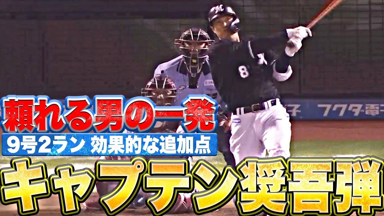 2点リードで迎えた7回の攻撃。1アウト2塁のチャンスで千葉ロッテ・中村奨吾がレフトへ今季9号となる2ランホームランで追加点。