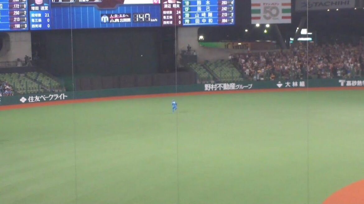 鈴木大地 ライトフライで3アウト、9回表終了。