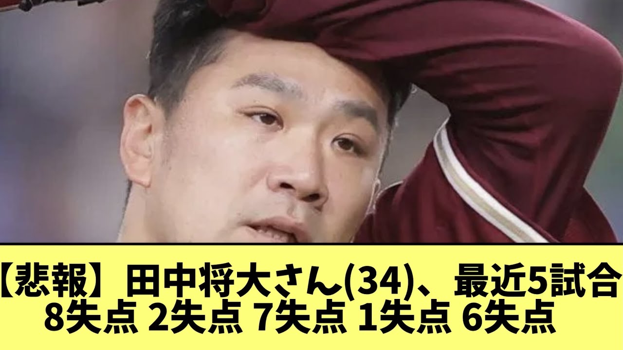 【悲報】田中将大さん(34)、最近5試合 8失点 2失点 7失点 1失点 6失点 野球