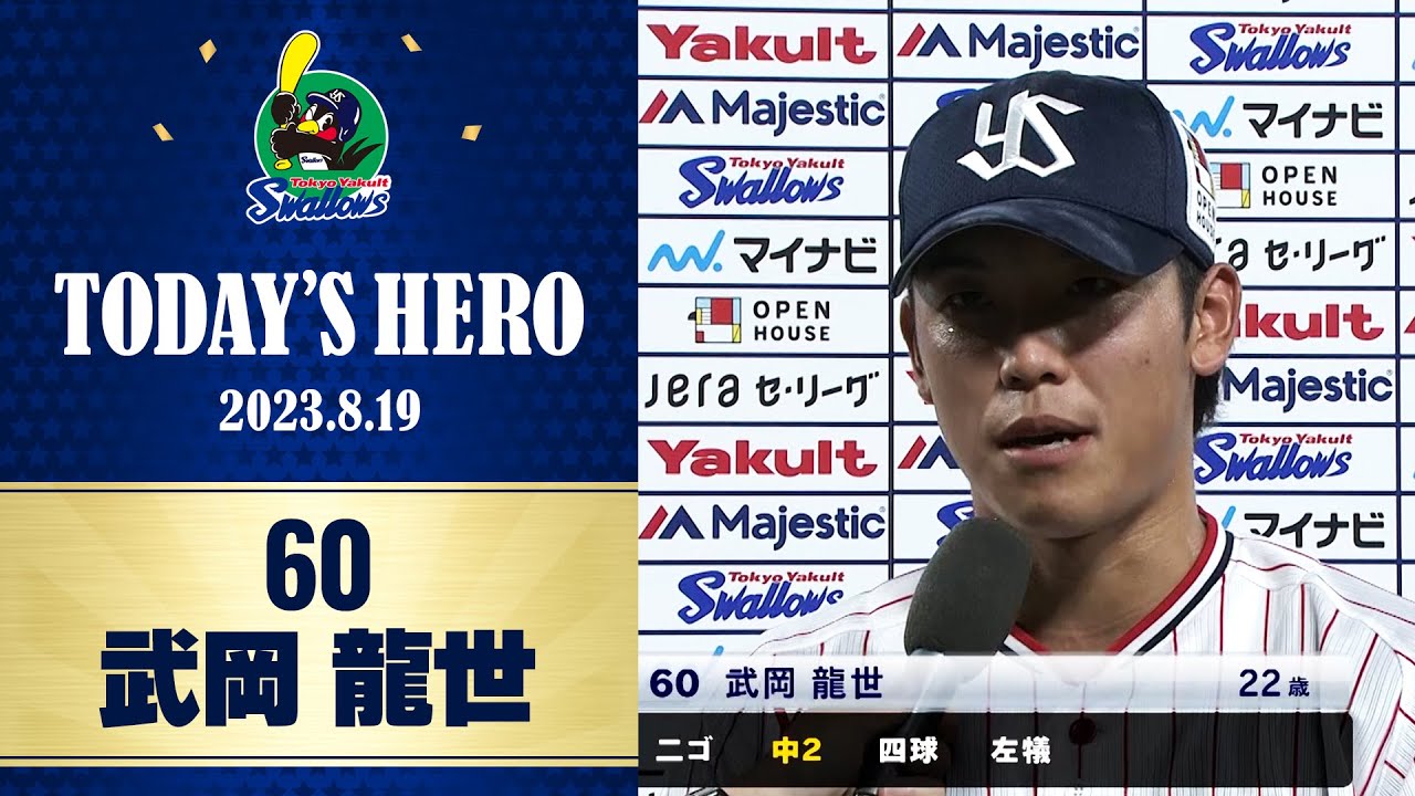 東京ヤクルトスワローズvs中日戦後の武岡龍世選手のヒーローインタビューです。