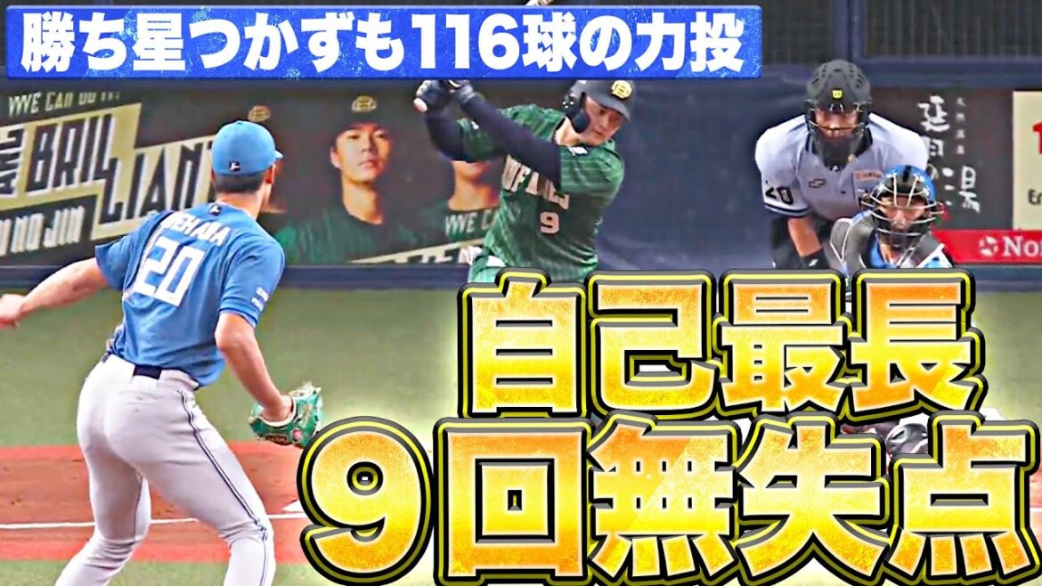 角度のついた低めへの変化球が非常によく決まり、オリックス打線が翻弄される展開。うまく散らしながら最後まで交わしていき、自身最長となる9回116球を投げて無失点。白星とはならなかったが、お見事すぎる投球を披露した。