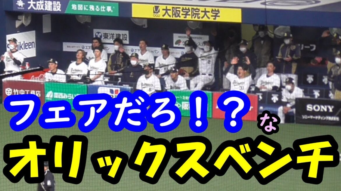 オリックスバファローズ大下誠一郎選手の打球が三塁線の際どい所に飛んだ時のベンチの反応