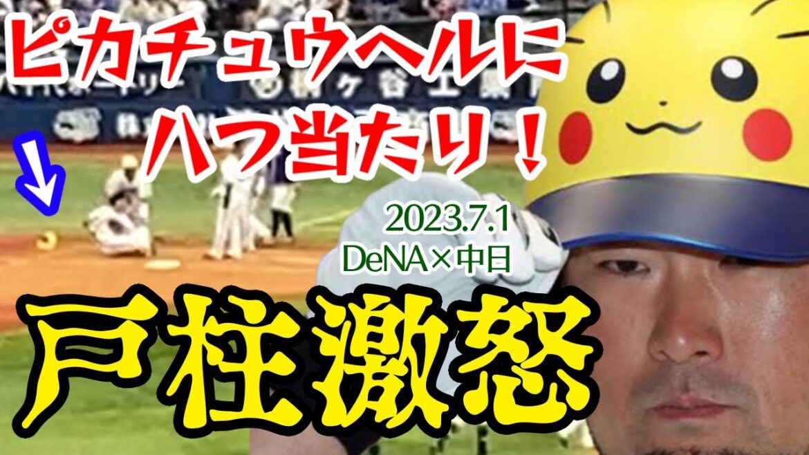 激怒バトル戸柱 ピカチュウヘル叩きつける ベイ引き分けの瞬間 延長12回裏二死一塁 2023年7月1日 横浜DeNAベイスターズ 中日ドラゴンズ