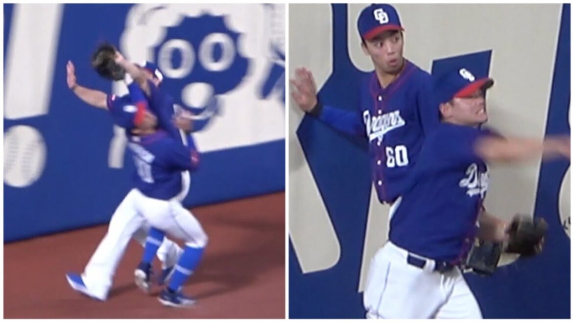 竜党ヒヤリ、右中間の打球を追った細川と岡林が交錯するも細川ボールを離さずナイスキャッチ!(2023年8月17日)