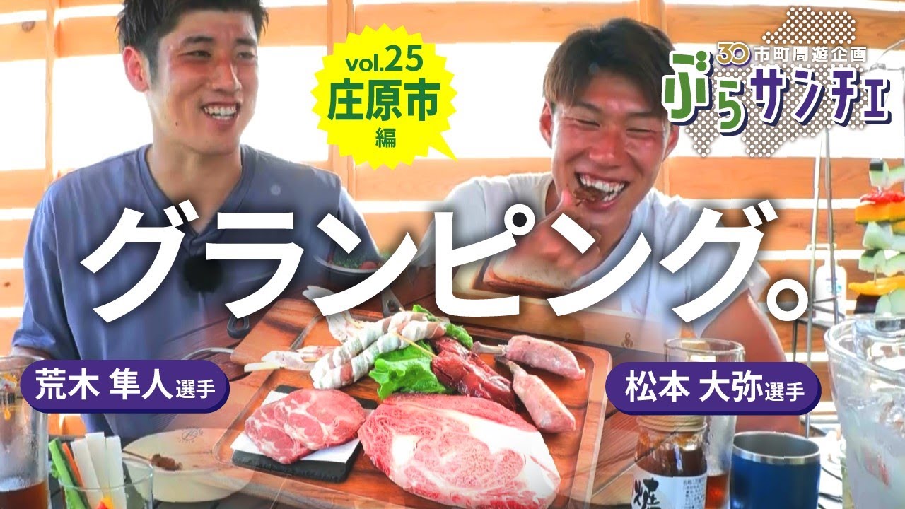 サンフレッチェ広島30周年記念・30市町周遊企画「ぶらサンチェ」vol.25は庄原市! 荒木隼人選手と松本大弥選手が、昨年オープンしたばかりの人気のグランピング施設を訪問し、バーベキューを堪能しました!