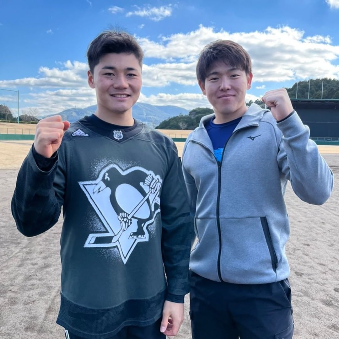 Hokkaido-Nippon-Ham-Fighters: 自主トレを公開した #清宮幸太郎 選手 マリーンズ・安田尚憲選手と健闘を誓います…