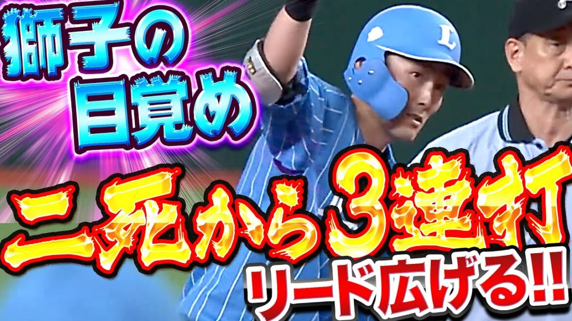 7回裏、埼玉西武・柘植世那が安打を放ち、西川愛也の二塁打、源田壮亮の2点タイムリーと3連打!! つげぇ、愛の、たまらん3連打でライオンズがさらにリードを広げた!!