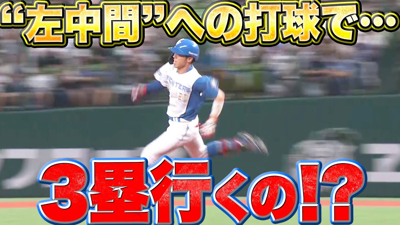 一見、2ベースかと思いきや、五十幡はセカンドベースを蹴ると俊足飛ばして三塁へ到達しました!!