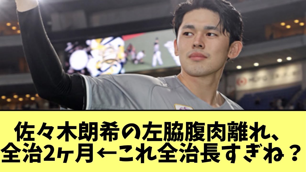 佐々木朗希の左脇腹肉離れ、全治2ヶ月←これ全治長すぎね?