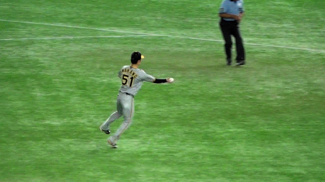 中野拓夢の流れるようなランニングスロー!当たり前のように見えるがファインプレーなのは間違いない!2023/08/26 阪神タイガース 東京ドーム 巨人戦
