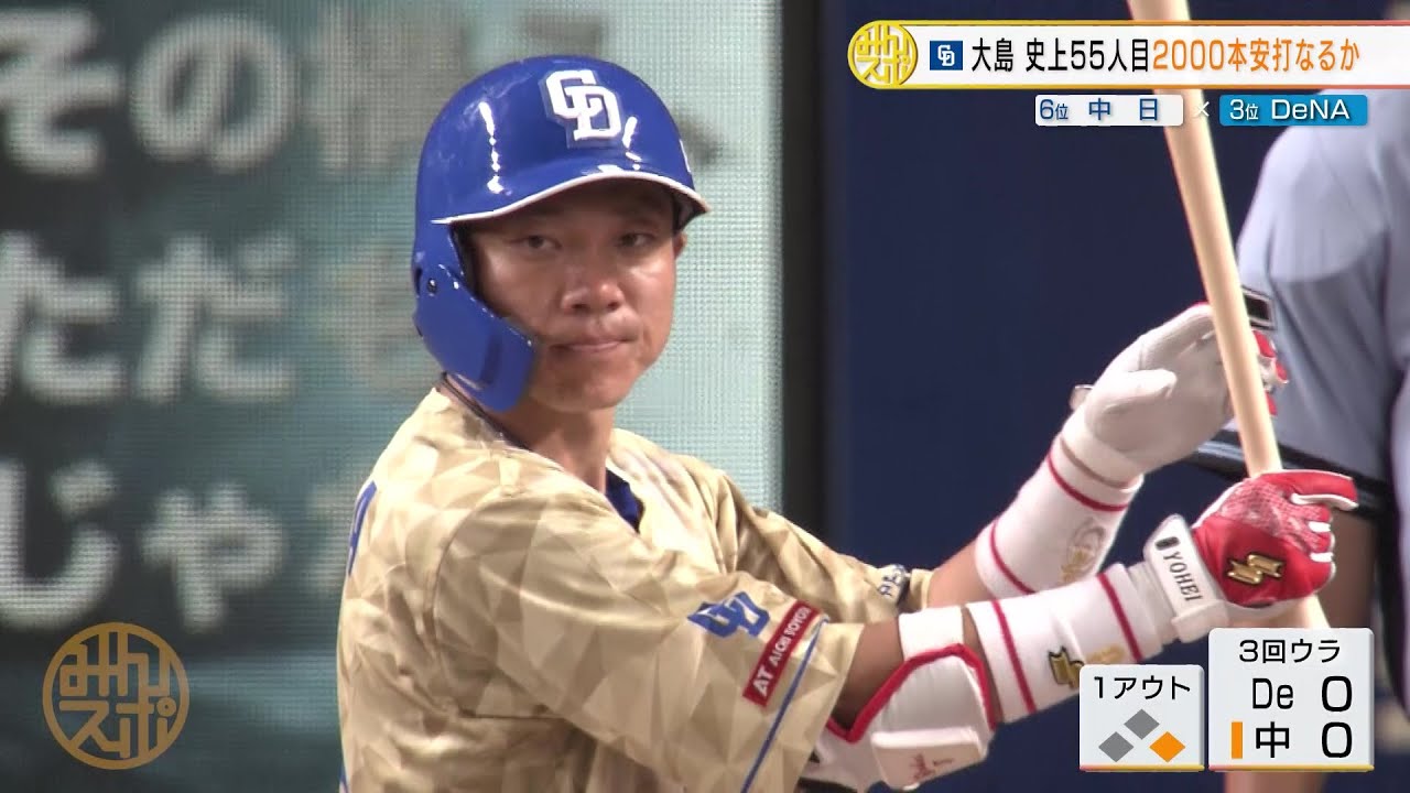 通算2000本安打の大記録まで残りあと1本としている中日一筋14年目、37歳の大島洋平。満員のドラゴンズファンの前での偉業達成に注目が集まった。