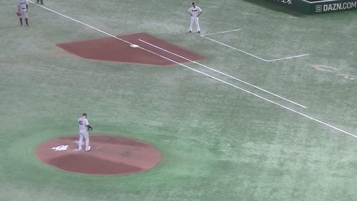 原口文仁にぶつけてしまう中川皓太【読売ジャイアンツ対 阪神タイガース 2023年8月9日】