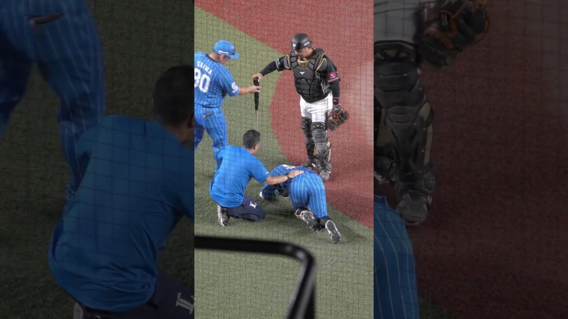 悶絶自打球 右膝に打球が当たり立ち上がれなくなる 頑張れ佐藤龍世選手 2023.8.12
