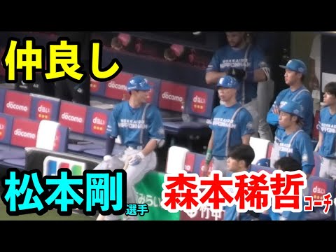 【帝京コンビ】試合前雑談をする森本稀哲コーチと松本剛選手 オリックスvs日ハム