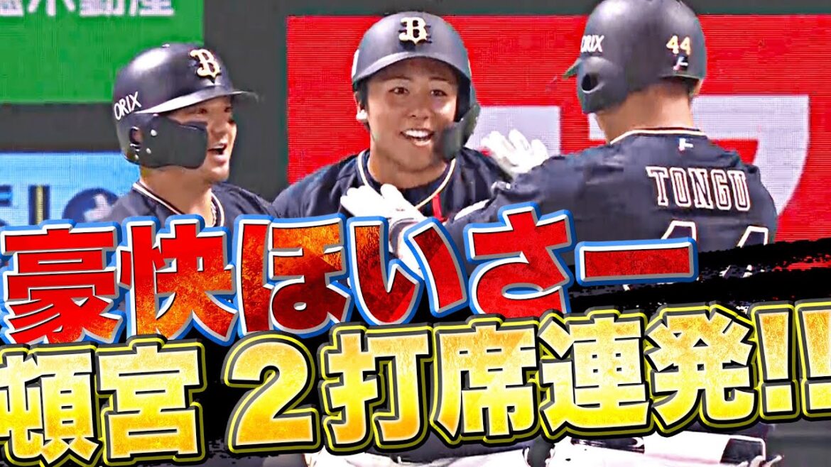 オリックス・頓宮裕真は初回、1,2塁のチャンスで初球を仕留めるとレフトスタンドへの3ランホームランで先制に成功!!! すると次の打席では左中間へ運ぶソロホームラン!! 今季14号&15号の2打席連発弾で大量リードを奪いました!!!