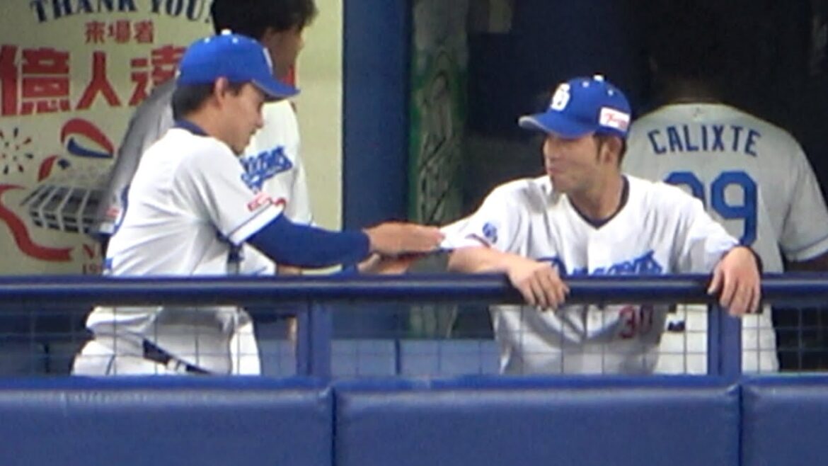 三好のグローブを借りて嵌めてみた加藤翔平、めちゃくちゃ臭かった様子(笑) (2023/08/25)