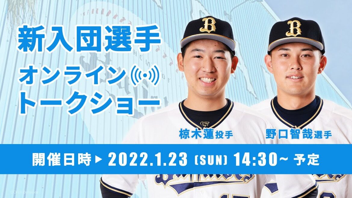 2022年期待の新人選手たちがイベントでも始動します!1月恒例の新入団選手トークショーは、今回、どなたでもご視聴いただけるオンライン開催!今年は、椋木蓮投手、野口智哉選手が登場します。ルーキーたちのフレッシュなトークを楽しみましょう!
