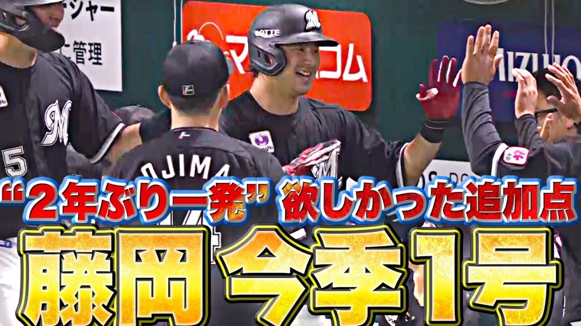 千葉ロッテ・藤岡裕大が右中間へ今季1号となる2ランホームラン。