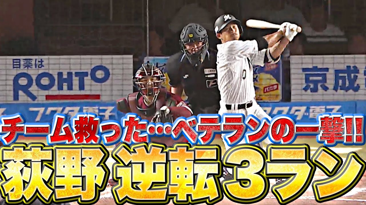 2点ビハインドの7回裏。2アウトながらも1,3塁のチャンスの場面で千葉ロッテ・荻野貴司がレフトへ逆転の3ランホームラン。