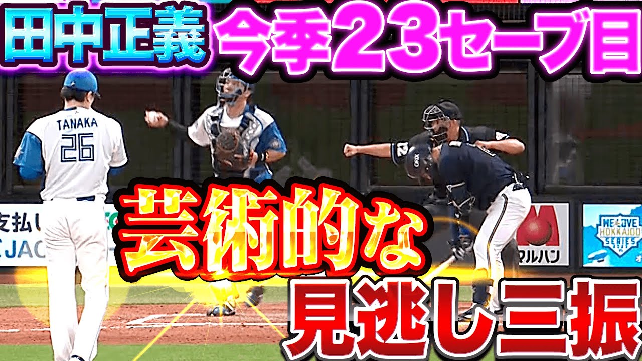 3点差のセーブシチュエーションで登板した北海道日本ハム・田中正義。空振り三振、ファールフライでテンポよくアウトを重ねると、最後は極上のストレートで芸術的な見逃し三振を奪いゲームセット!!! 2週間ぶりの正義執行でチームの連敗もストップ!!!