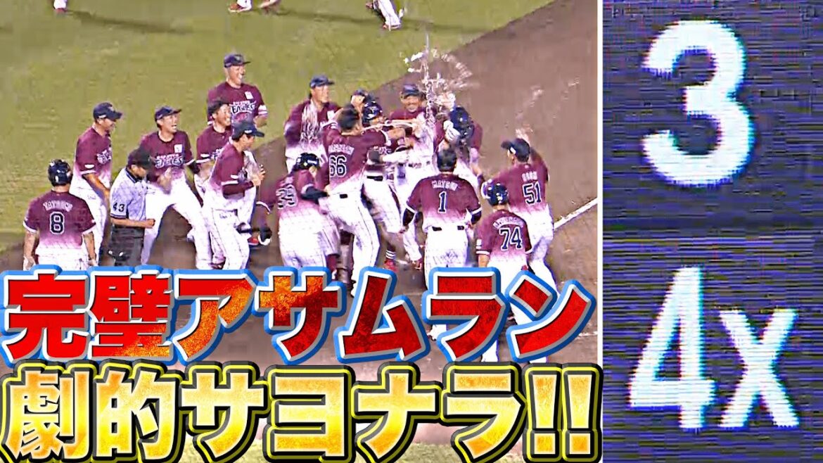 逆転を許し迎えた9回裏。東北楽天は相手の失策とヒットで無死1,2塁を作ると辰己涼介のタイムリーヒットで1点を返す!!! すると…続く浅村栄斗が完璧に捉えた打球はレフトスタンドへ一直線!!! リーグ単独トップとなる今季22号、確信の劇的サヨナラ3ランでチーム5連勝に導きました!!!!