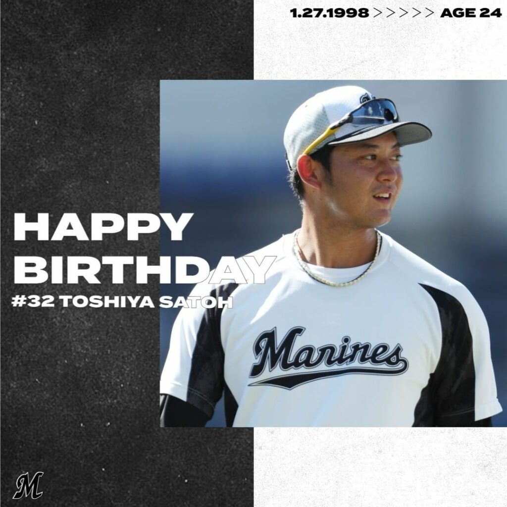 本日1/27は、 #佐藤都志也 選手の24歳の誕生日です。おめでとうございます! #chibalotte #happybirthday Chiba Lotte MarinesChiba Lotte Marines Official MediachibalottehappybirthdayNPB Pacific LeagueOfficial Media佐藤都志也千葉ロッテマリーンズ NPBHUB.COM | The Fanbase of Nippon Baseball & Nippon Professional Baseball