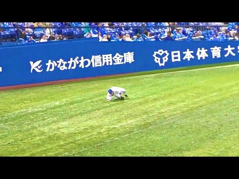 雨でイレギュラー? すってんころりんで三塁打となってしまった蝦名達夫の守備 横浜DeNAベイスターズ 2023/9/8