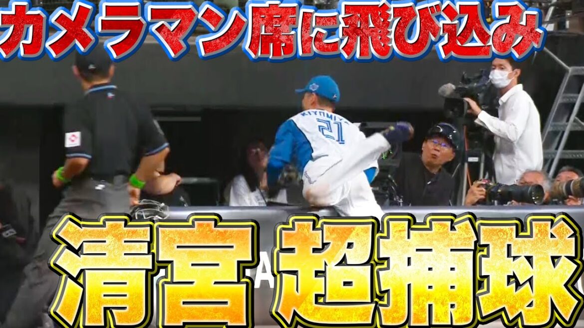 北海道日本ハム・清宮幸太郎がカメラマン席に飛び込みながらもファウルフライをスーパーキャッチ!!