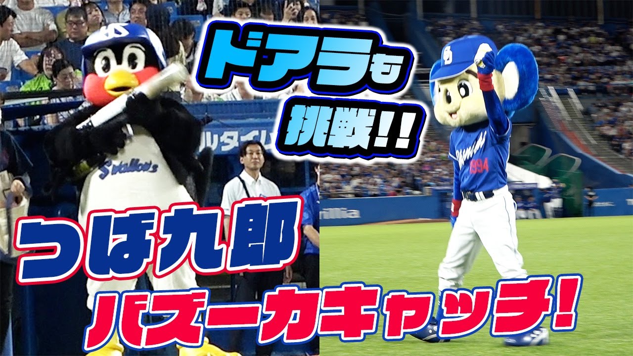 2023年8月20日(日) スワローズCREWとドアラが「つば九郎バズーカキャッチ」に挑戦してくれました!