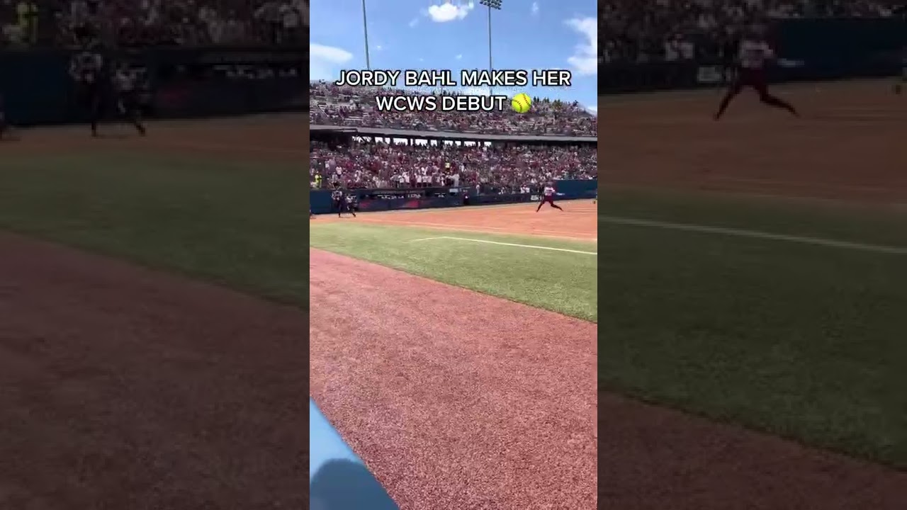 Oklahoma softball’s stud freshman Jordy Bahl threw her first pitch in almost a month after injury, returning to the mound to get the final out in Oklahoma softball’s WCWS opening win. #shorts