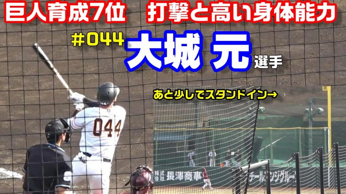 2022年巨人育生7位 大城元選手 楽天ドラ1 荘司選手から、ホームランまであと少しのフェン直弾