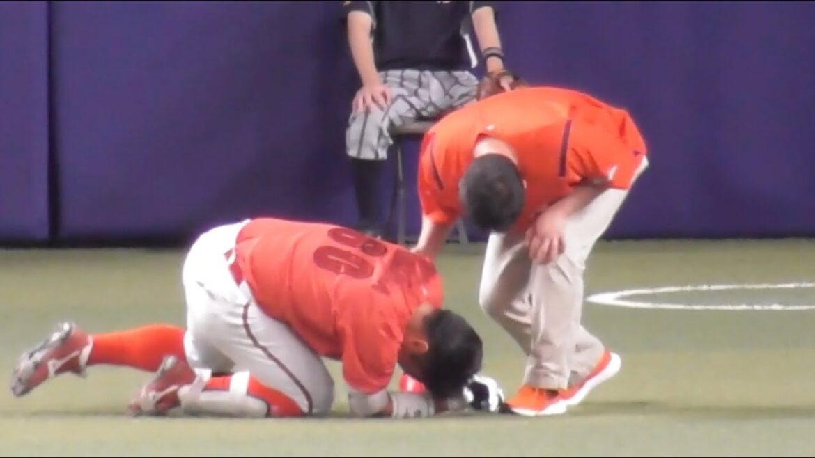 広島東洋カープvs中日ドラゴンズ 齋藤投手の変化球がすっぽ抜け、ボールはスイングしていた田村選手の左手に当たりました。 田村選手はその場に倒れ込み悶絶、ようやく立ち上がって歩き出すとベンチへ。 この投球は当初、死球扱いかと思われましたが、審議の後にスイングしていたとみなされ、判定はストライク。代打・末包昇大が送られ、試合が再開されました。 #田村俊介 #広島東洋カープ #carp Hanshin Tigersプロ野球現地映像俊介 野球関連動画阪神タイガース NPBHUB.COM | The Fanbase of Nippon Baseball & Nippon Professional Baseball
