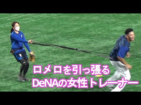横浜DeNAベイスターズの試合前の練習で、 女性のトレーナーがロメロ投手を引っ張っている映像です。 調べてみたら、この女性トレーナーは林優衣さんという方で 日本プロ野球で初めての女性トレーナーらしいですね。 前例の無い職種に挑戦するのはスゴいことですよね。 外野に飛んでくるバッティング練習の打球に気を配りながら 時には自らキャッチするなど、 選手の安全に配慮しながらトレーニングをしていました。 #横浜denaベイスターズ #女性トレーナー #プロ野球DeNAORIX Buffaloesオリックス・バファローズロメロロメロ 野球女性トレーナー林優衣横浜野球 ハイライト野球 ライブ野球ニュース NPBHUB.COM | The Fanbase of Nippon Baseball & Nippon Professional Baseball