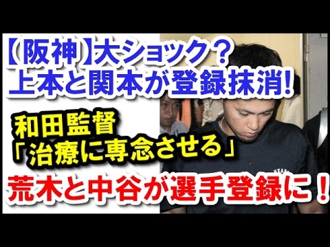 阪神・上本博紀内野手(29)と関本賢太郎内野手(36)が6日、出場選手登録を抹消された。