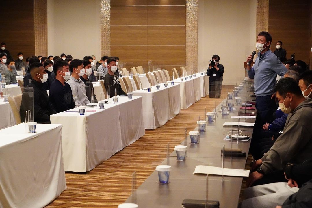 Chunichi-Dragons: 明日からの沖縄キャンプを前に、全体ミーティングが行われました。 ルーキーたちも気を引き締めて、さあキャンブイン #中日ドラゴンズ #沖縄キャンプ…