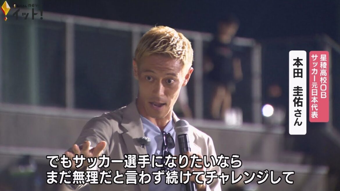 本田圭佑さんは「進む道はサッカー選手だけじゃないよ。でもサッカー選手になりたいならまだ無理だと言わず、続けてチャレンジして次の勝利に向けて頑張らないといけない」と、試合を終えた選手たちに熱いエールを送りました。