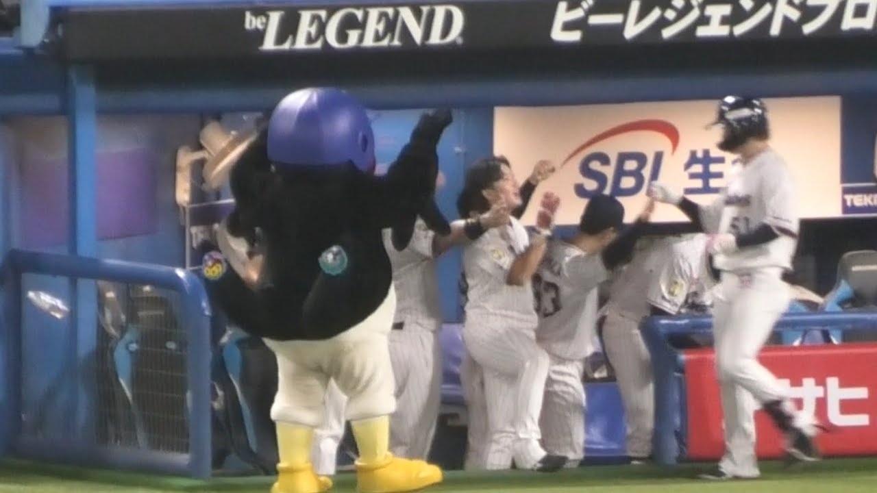 つば九郎、5号ホームランを放った濱田太貴を出迎える 2023/8/16