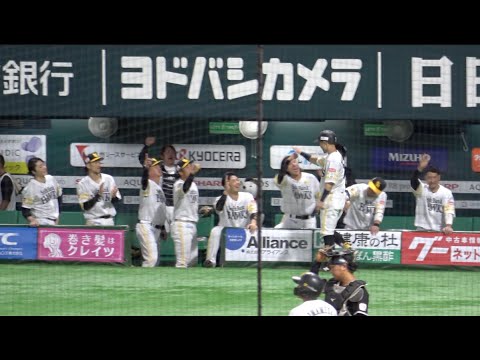 タイムリーを打った中村晃を祝福するホークスベンチ!