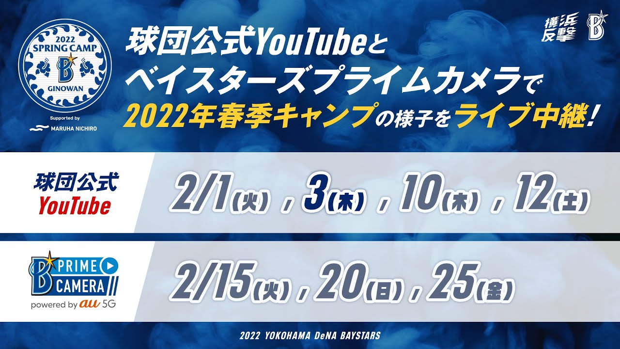 2022年横浜DeNAベイスターズ 春季キャンプ『2022 SPRING CAMP Supported by マルハニチロ』の模様を、CS放送「TBSチャンネル2」、動画配信サービス「Paravi(パラビ)」に協力いただき、配信いたします。
