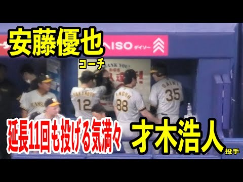 【11回も行く気満々の才木浩人投手】延長10回裏を抑えヘルメットを被り打席の準備をするも安藤優也コーチと話し交代。 #才木浩人#安藤優也#タイガース #プロ野球baseballHanshin Tigersタイガースタイガース才木浩人ドラゴンズ中日中日ドラゴンズ中日阪神安藤優也岡田彰布才木浩人阪神阪神タイガース NPBHUB.COM | The Fanbase of Nippon Baseball & Nippon Professional Baseball