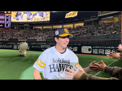 復活!勝利のハイタッチ大関友久投手(2023/03/31 福岡ソフトバンクホークスvs千葉ロッテマリーンズ)