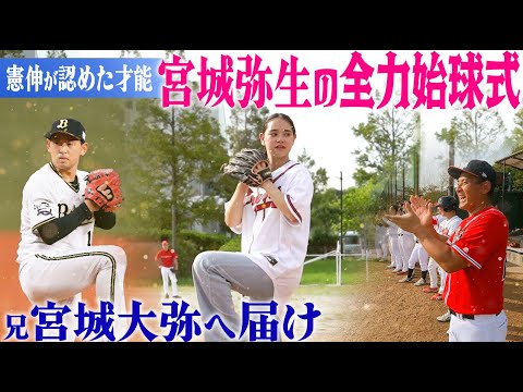 オリックス宮城大弥選手の妹であり憲伸ブレーブスの女子マネ宮城弥生が人生初始球式に挑戦。その密着ドキュメントです。