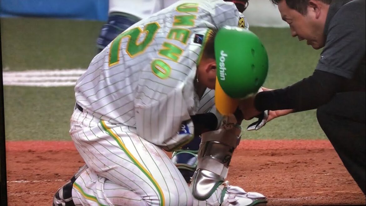タイガース梅野隆太郎、死球で途中交代。苦悶の表情で倒れ込む。 Tokyo Yakult Swallowsタイガースデッドボールヤクルト今野龍太東京ヤクルトスワローズ梅野隆太郎死球阪神 NPBHUB.COM | The Fanbase of Nippon Baseball & Nippon Professional Baseball