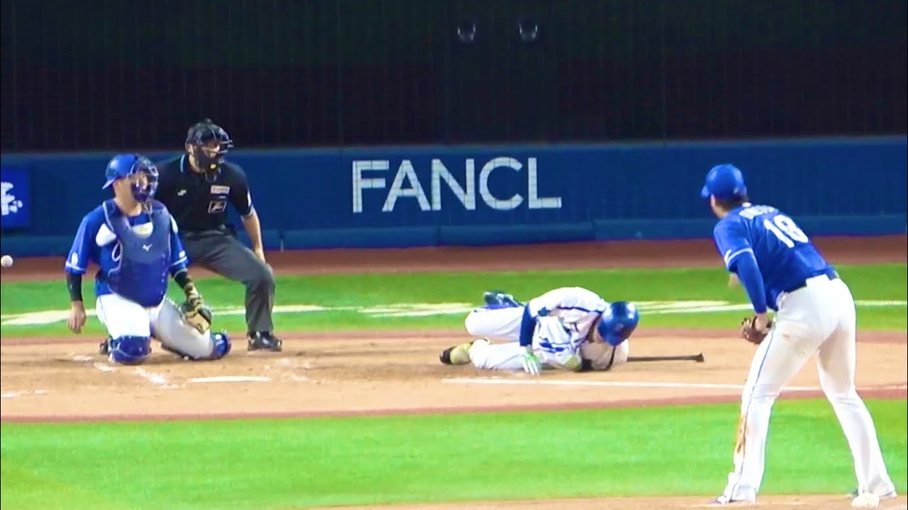 頭部付近への死球に唖然とする知野直人 横浜DeNAベイスターズ 2013/9/13