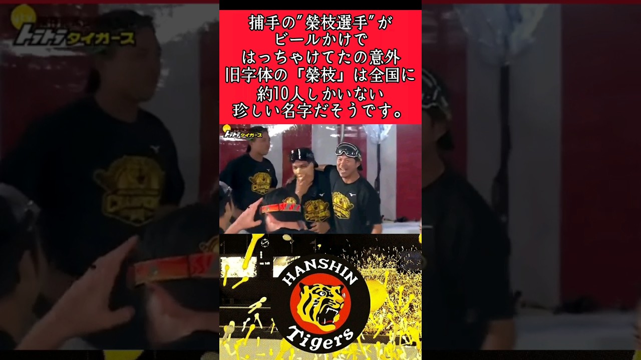 【阪神】「2021年プロ野球選手 珍しいレア名字ランキング」で1位の榮枝選手がビールかけではっちゃけていた! #阪神 #阪神タイガース #榮枝裕貴 #shorts