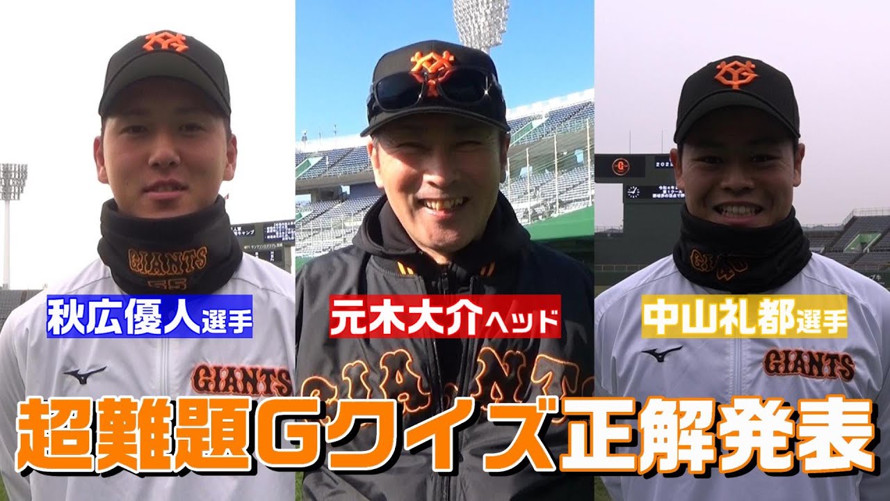 球団公式SNSアカウント連動企画として実施中の「#超難題Gクイズ」!元木大介ヘッド、秋広優人、中山礼都、両選手が出題したクイズの正解を発表します!
